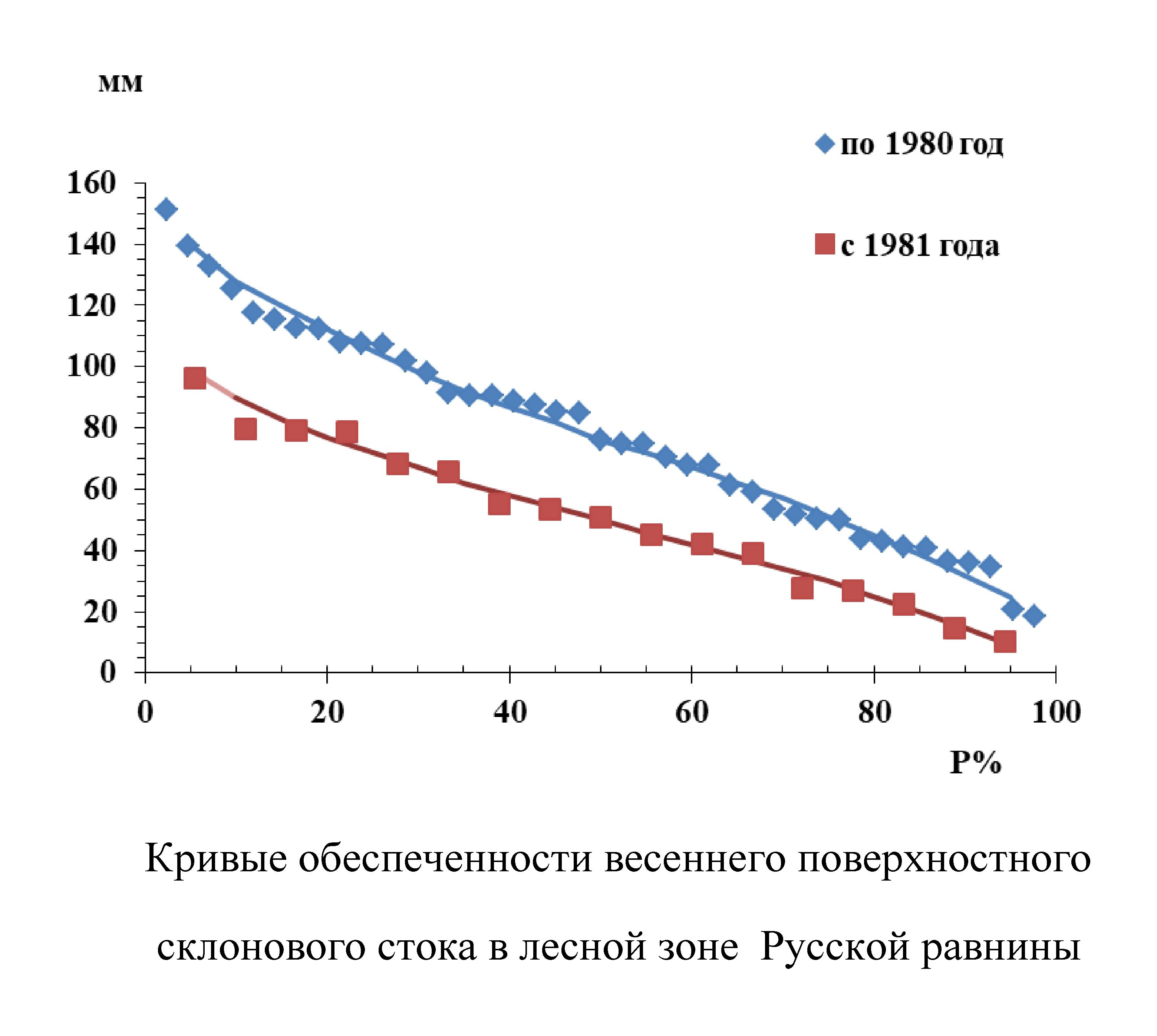2. Curves of spring surface slope runoff probability in the forest zone of the Russian Plain | |