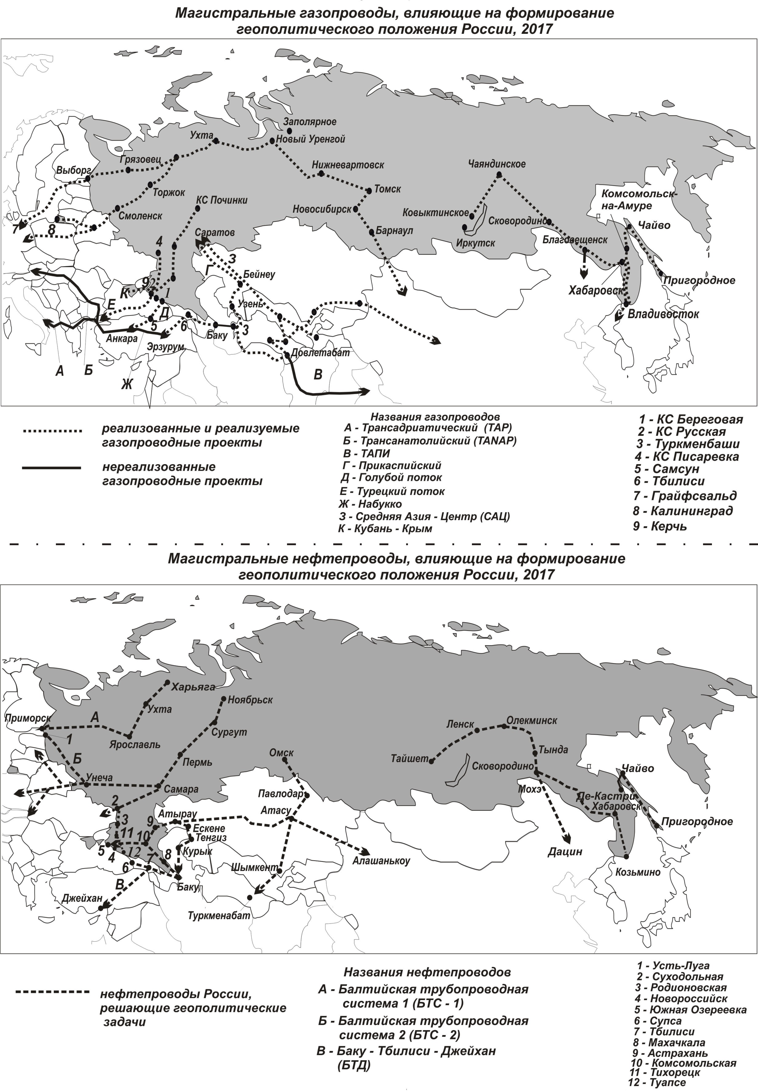 1. Магистральные газо- и нефтепроводы, влияющие на формирование геополитического положения России, 2017 | |