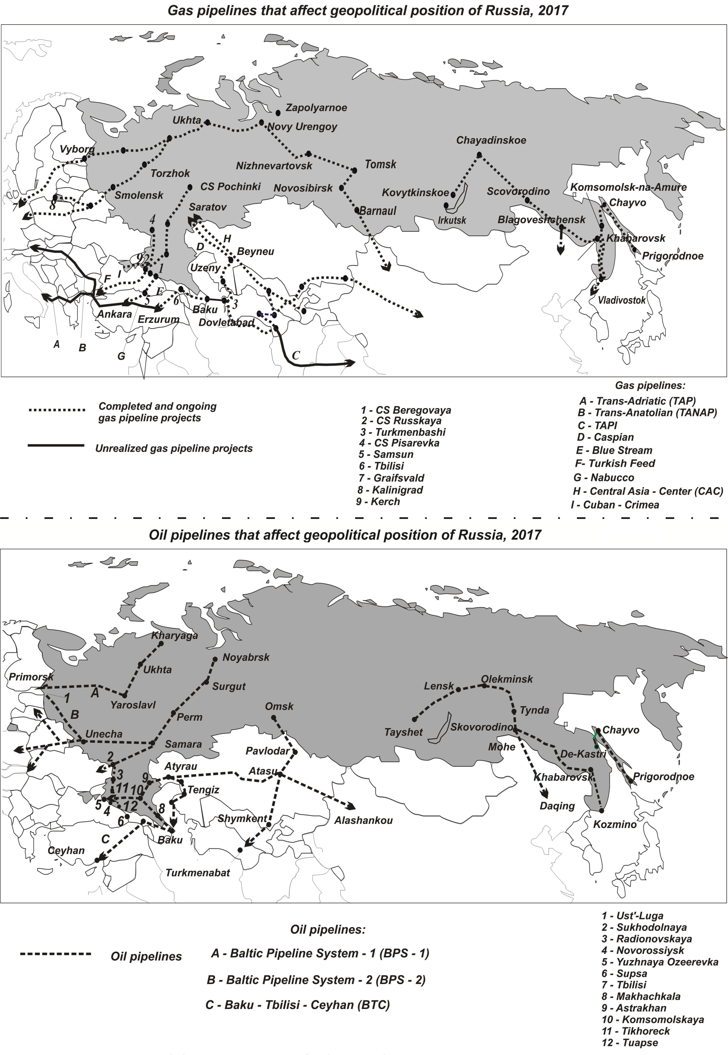 2. Gas and oil pipelines that affect geopolitical position of Russia, 2017 | |