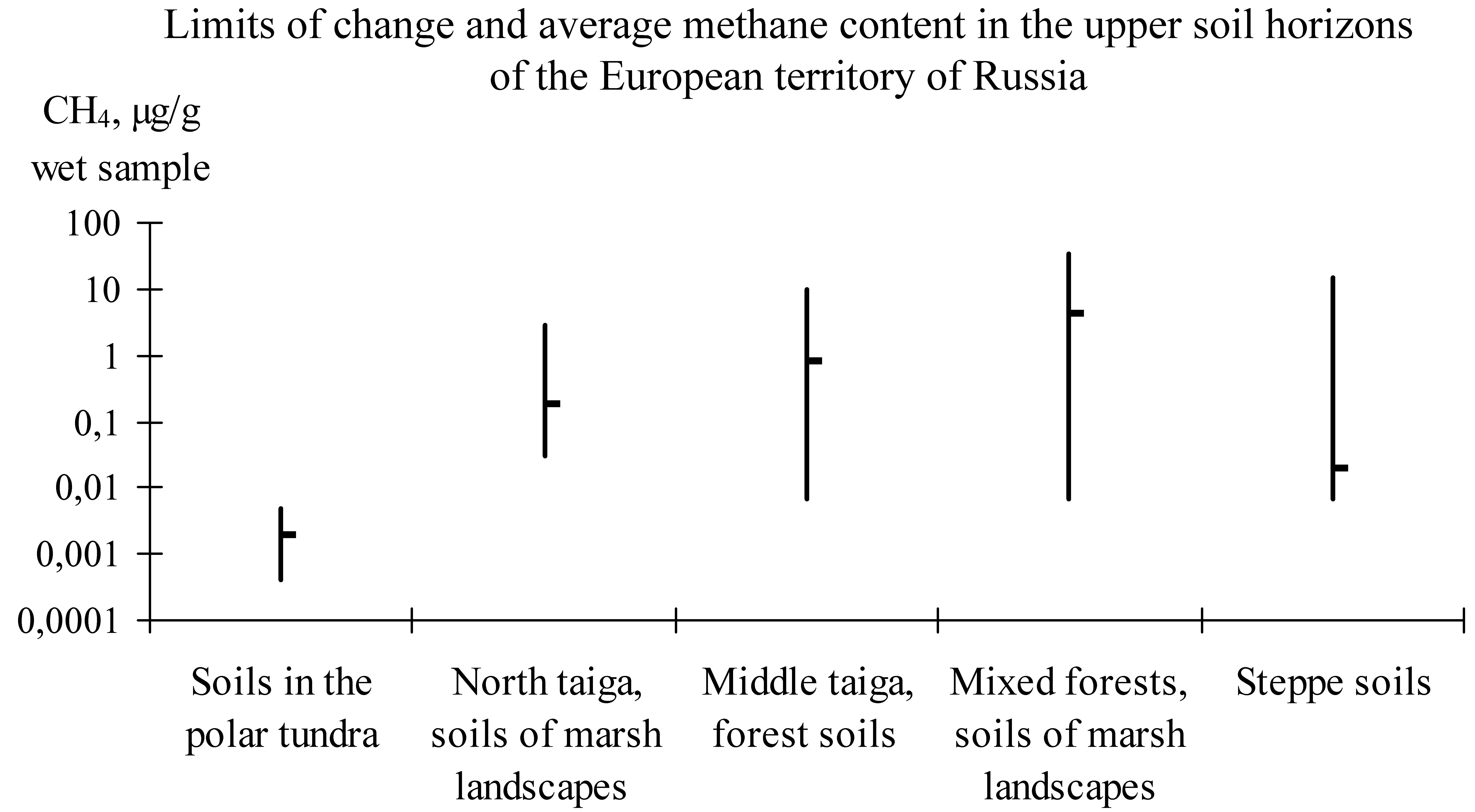 2. Limits of change and average methane content in the upper soil horizons of the European territory of Russia