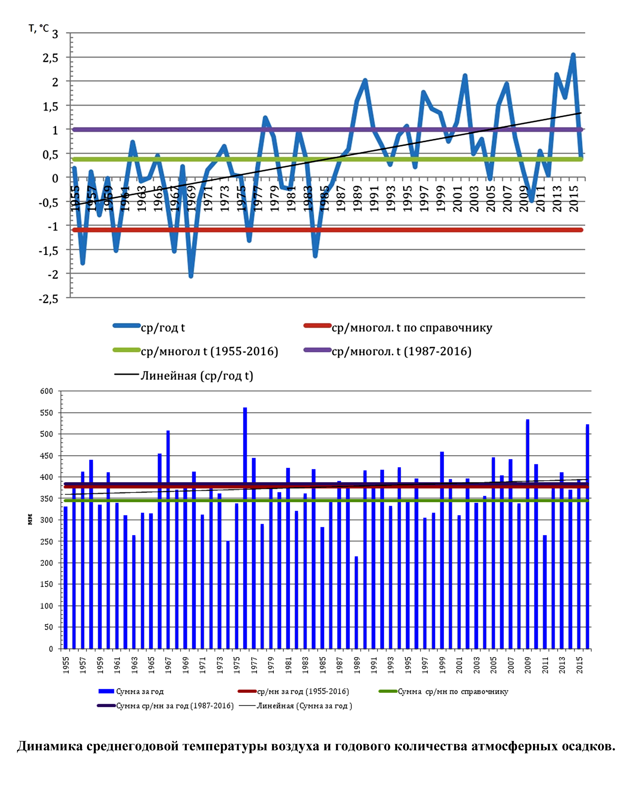 1. Динамика среднегодовой температуры воздуха и годового количества атмосферных осадков | |