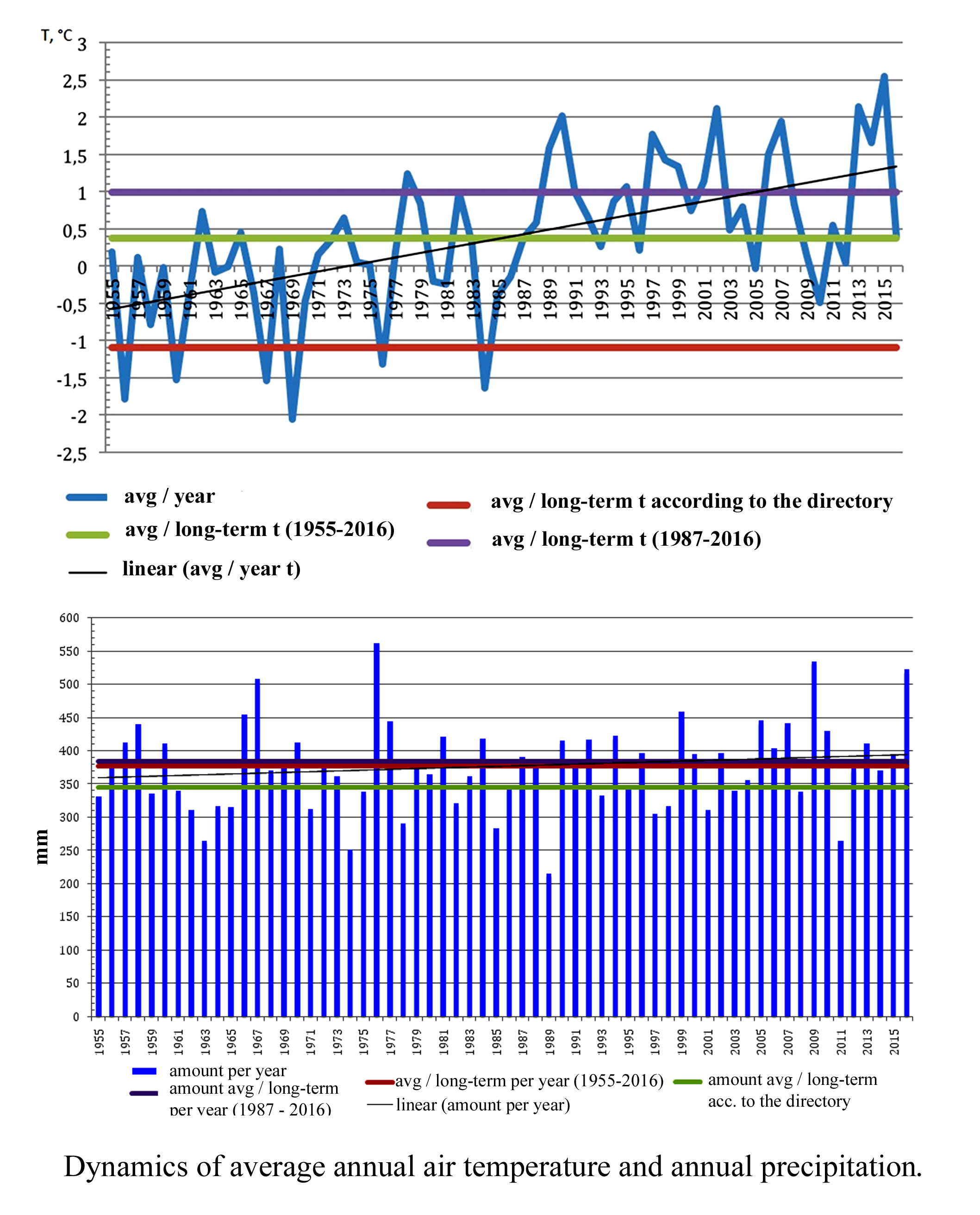 2. Dynamics of average annual air temperature and annual precipitation | |