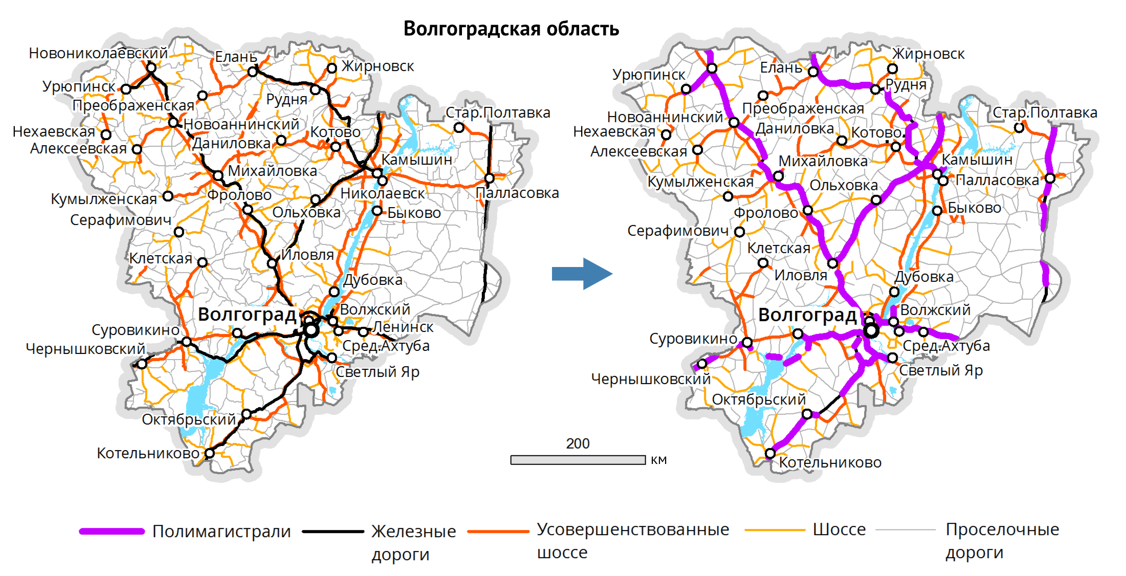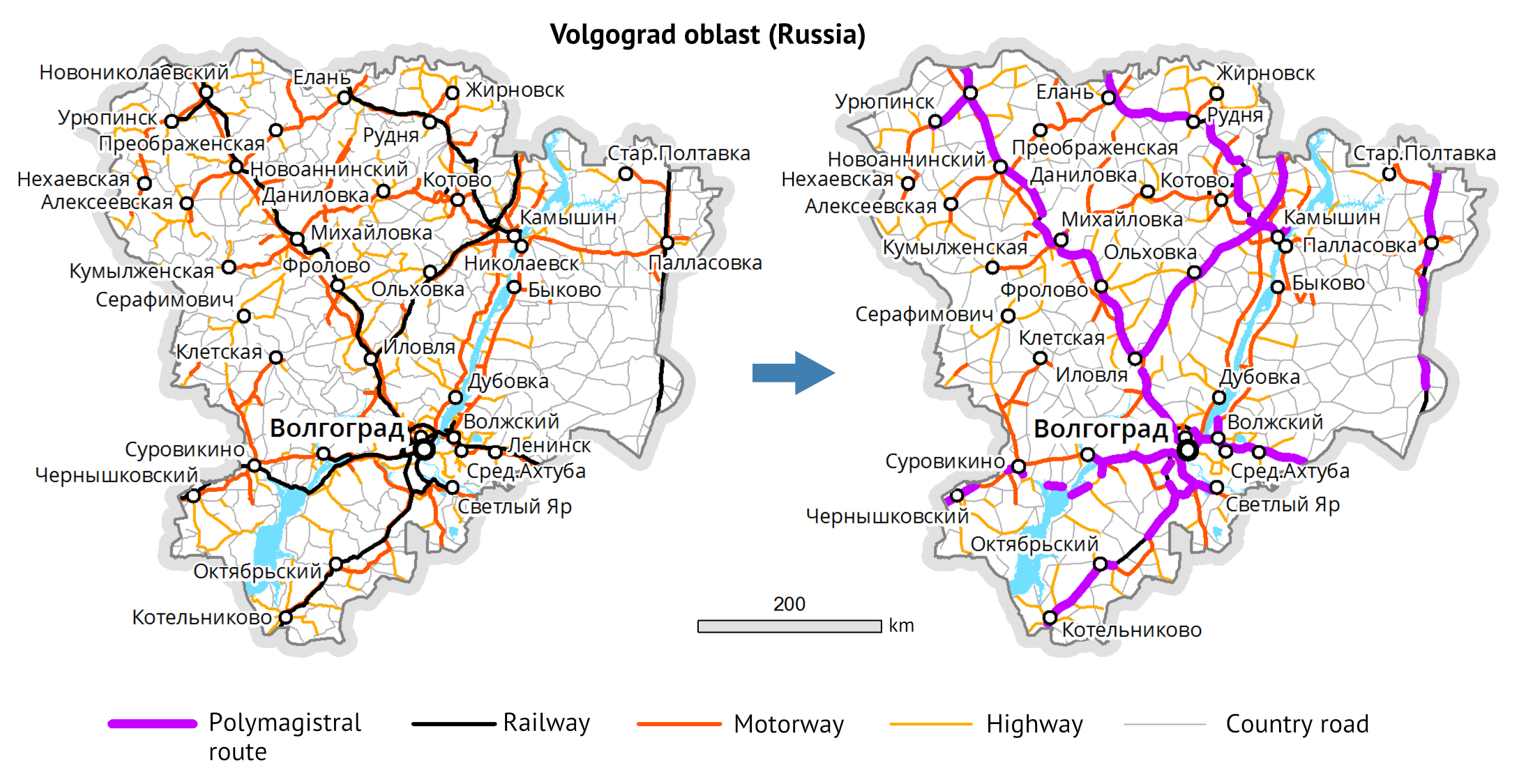 2. Polymagistral routes, railways, and roads of Volgograd region (Russia) | |