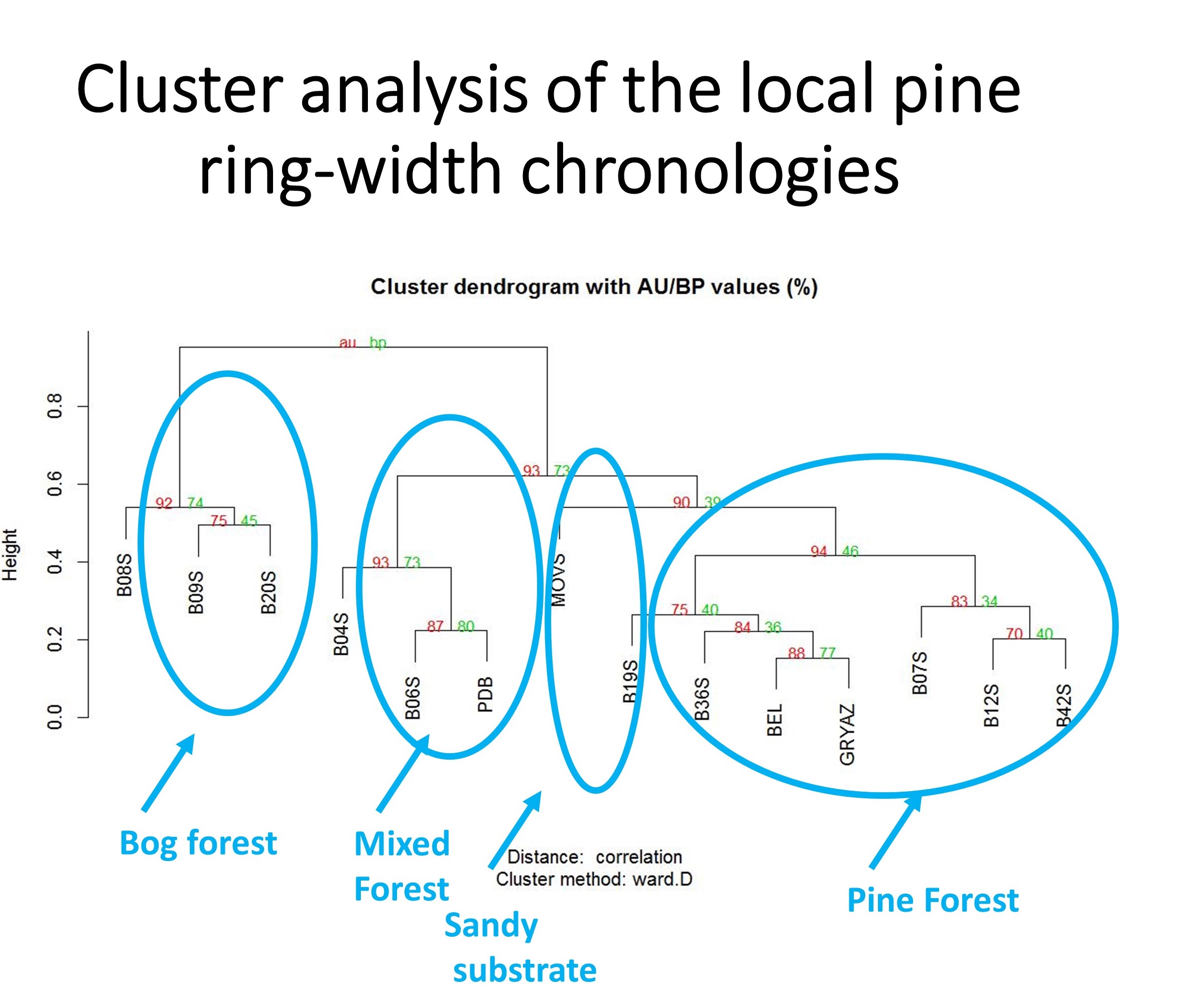 1. Cluster analysis of the local pine ring-width chronologies