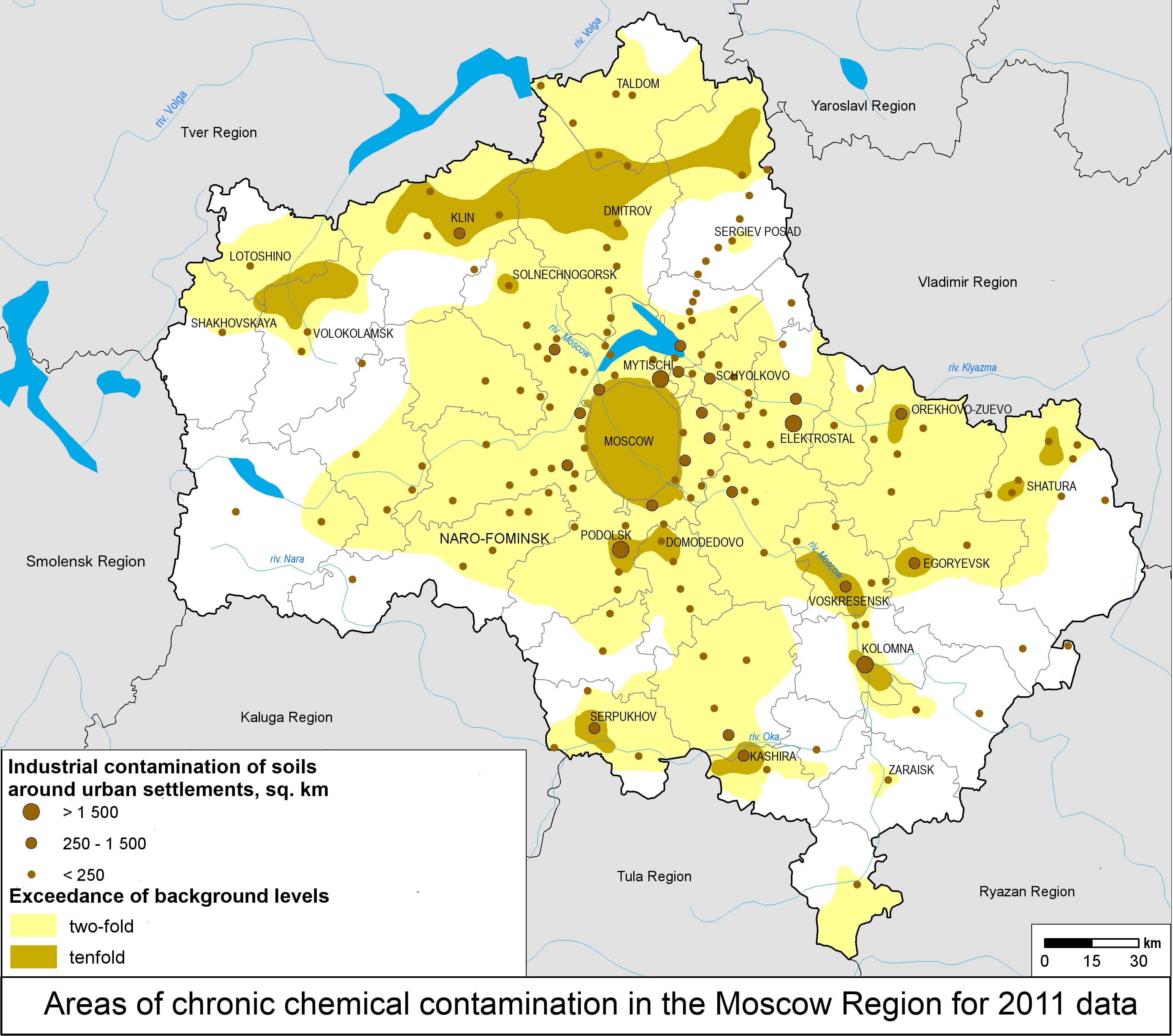 1. Areas of chronic chemical contamination in the Moscow Region for 2011 data | |