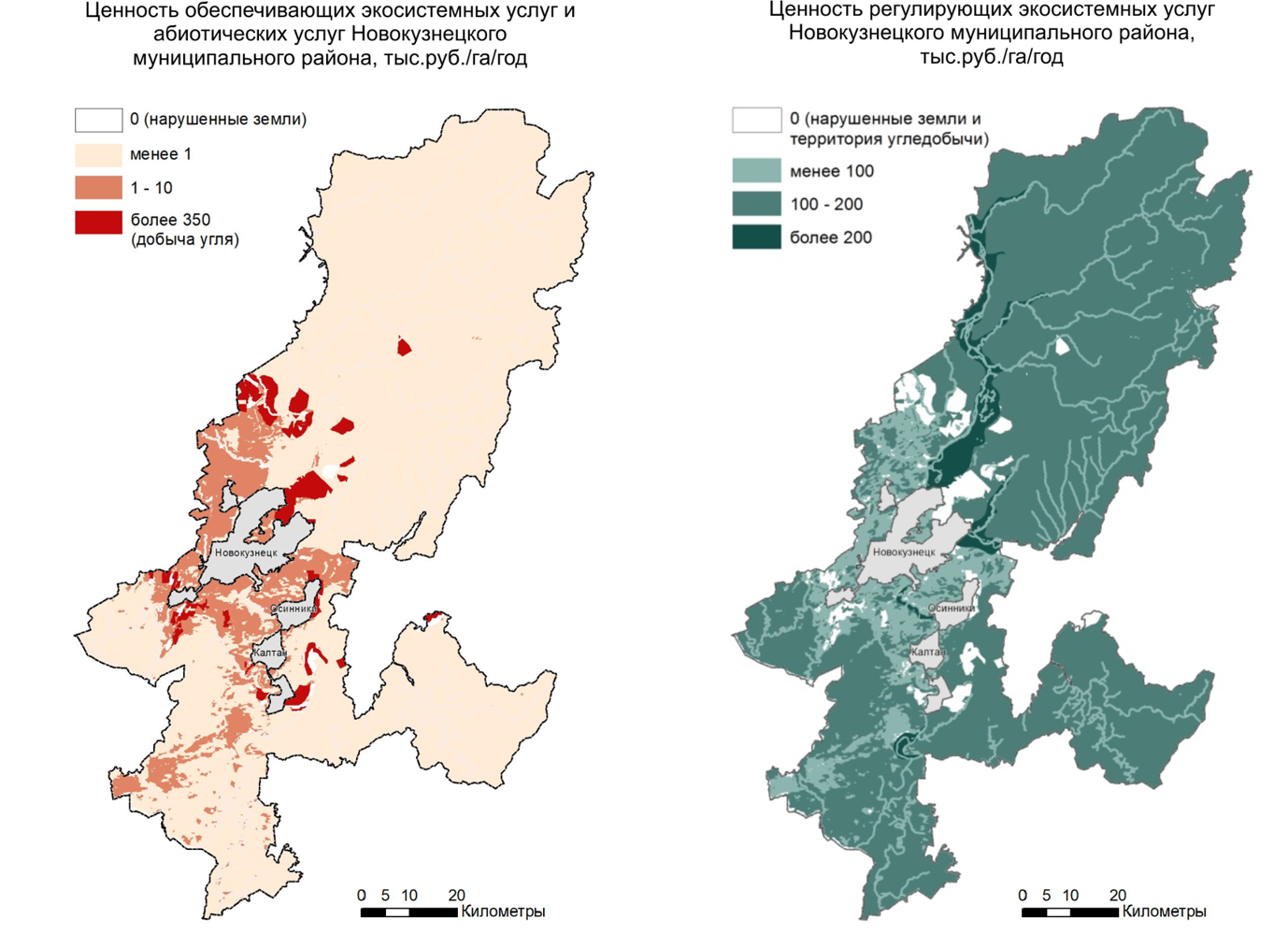 1. Ценность обеспечивающих и регулирующих экосистемных услуг и абиотических услуг Новокузнецкого муниципального района