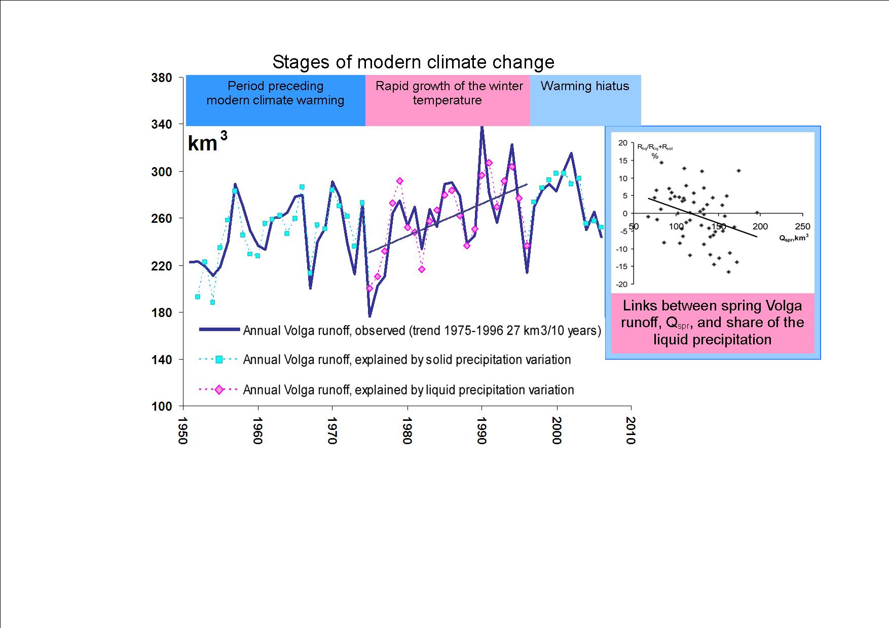 1. Changes in annual Volga runoff in 1951–2006 and links between spring Volga runoff and share of the liquid precipitation | |