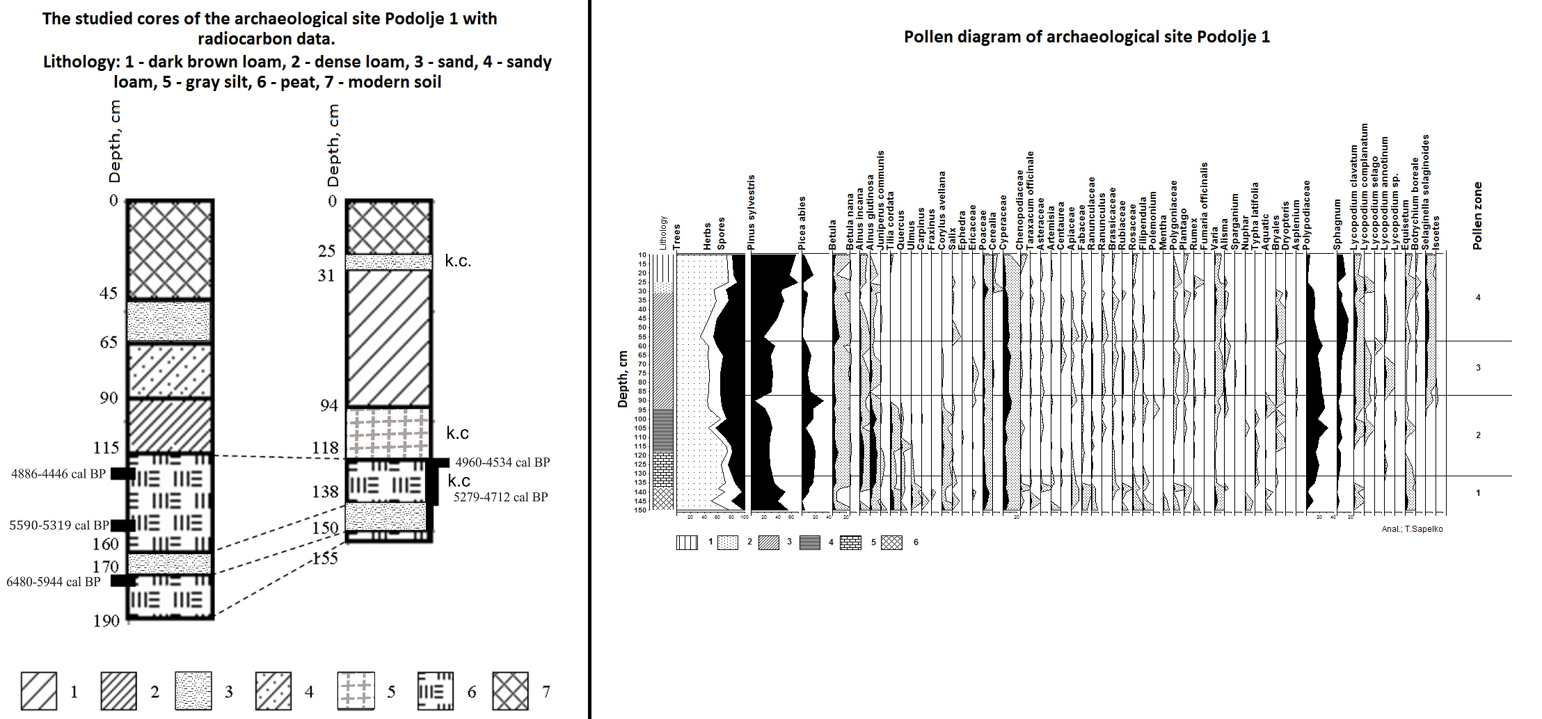 1. The studied cores and pollen diagram of archaeological site Podolje 1
